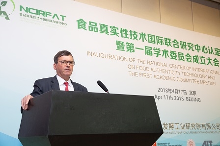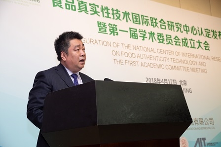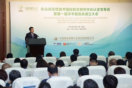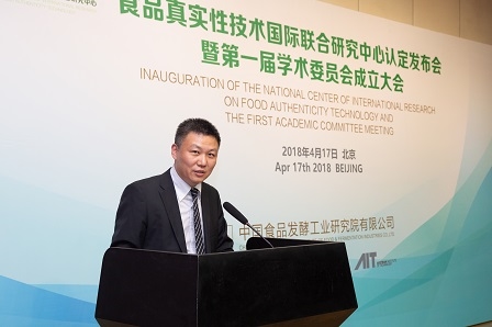 2018年4月17日,“食品真實性技術國際聯合研究中心認定發布會暨第一屆學術委員會成立大會”在中國食品發酵工業研究院召開。科技部中國農村技術開發中心賈敬敦主任、中國工程院及國家食品安全風險評估中心陳君石院士、中國科學技術交流中心董克勤處長、歐盟駐華代表團公使銜參贊、科學技術與環境部主任Laurent Bochereau、國家工業和信息化部消費品工業司鄧小丁處長、國家質檢總局科技司裴曉穎巡視員,國家食品藥品監督管理總局食品安全監管三司高晗處長、國家標準化管理委員會農業食品標準部于茜處長、中國食品科學技術學會邵薇副理事長、中國飲料協會劉元理事長助理、中國食品發酵工業研究院蔡木易院長、德國聯邦風險評估研究所、德國農業研究中心、捷克布拉格化工大學等來自歐盟和國內食品真實性技術相關專家、學者等100余人參加了本次會議。
