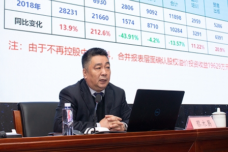 1月18日上午,我院召開2019年度工作會議,執行董事、總經理、黨委副書記蔡木易代表研究院領導班子作工作報告,院領導班子成員和全院干部職工參加會議,集團公司法律事務部副主任、我院監事寧靜應邀出席會議,會議由宋全厚副總經理主持。