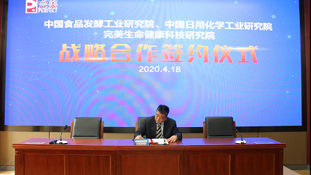 4月18日,食品院、日化院與完美生命健康科技研究院舉行戰(zhàn)略合作簽約儀式,儀式由中國輕工集團(tuán)有限公司副總經(jīng)理、食品院黨委副書記、董事長、日化院董事長蔡木易,完美(中國)有限公司董事長古潤金在云端完成簽約儀式,完美生命健康科技研究院名譽(yù)院長徐華鋒,食品院副院長魯軍、段盛林,功能肽研發(fā)部主任谷瑞增全程參與見證。