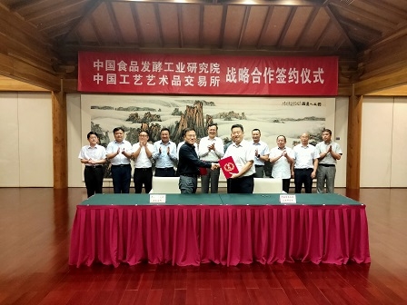 2020年8月18日下午,中國食品發(fā)酵工業(yè)研究院有限公司(以下簡稱“食品院”)與中國工藝藝術(shù)品交易所有限公司(以下簡稱“中國藝交所”)就食品類(醬香型白酒)的籌劃運營合作簽約儀式在新保利大廈隆重舉行。保利集團(tuán)副總經(jīng)理劉軍才,中輕集團(tuán)黨委書記、董事長張萬順,工藝集團(tuán)黨委書記、董事長李晶,保利集團(tuán)行政管理中心副主任譚勝,中國工藝集團(tuán)副總經(jīng)理包額爾敦,食品院總經(jīng)理董建輝,中國藝交所總經(jīng)理于峰,食品院副總經(jīng)理宋全厚等出席了簽約儀式,簽約儀式由工藝集團(tuán)總經(jīng)理助理、藝交所黨委書記戎志宏主持。