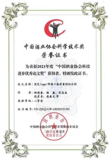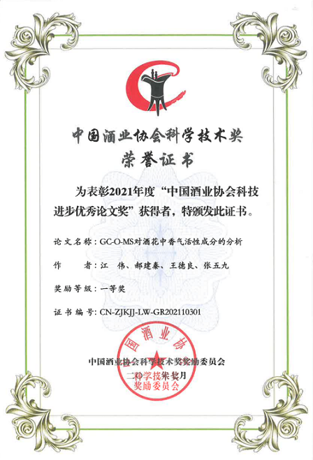 此外,中國(guó)食品院4篇科技論文榮獲2021年度中國(guó)酒業(yè)協(xié)會(huì)科學(xué)技術(shù)獎(jiǎng)(論文類),其中一等獎(jiǎng)1篇,二等獎(jiǎng)2篇,三等獎(jiǎng)1篇。