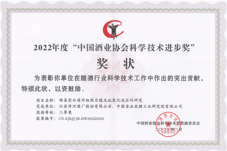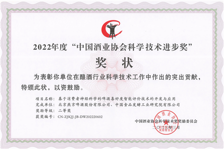 聯(lián)合北京燕京啤酒股份有限公司《基于消費(fèi)者神經(jīng)科學(xué)的啤酒喜好度智能評(píng)價(jià)技術(shù)的開(kāi)發(fā)與應(yīng)用》、聯(lián)合江蘇洋河酒廠股份有限公司《綿柔型白酒對(duì)細(xì)胞自噬及抗氧化效應(yīng)的研究》項(xiàng)目成果分別榮獲科學(xué)技術(shù)進(jìn)步二等獎(jiǎng)。