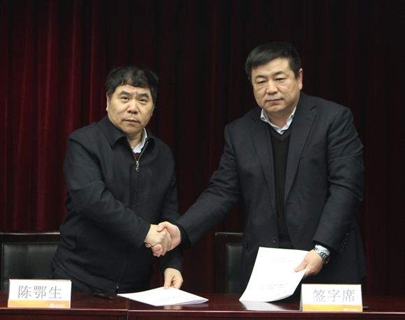 集團黨委書記、董事長陳鄂生與皮革院黨委書記楊承杰簽訂黨風廉政建設責任書