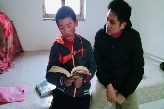 中輕集團選派到希莊村的第一書記肖果常去老李家,看到浩浩喜歡貓在炕上閱讀,遇到書籍、雜志、報紙他都會從頭到尾看上幾遍。求知若渴的浩浩,深深感動著從大城市來的扶貧干部。除了鼓勵,肖果思考著怎樣幫這個貧窮少年的讀書夢插上翅膀。