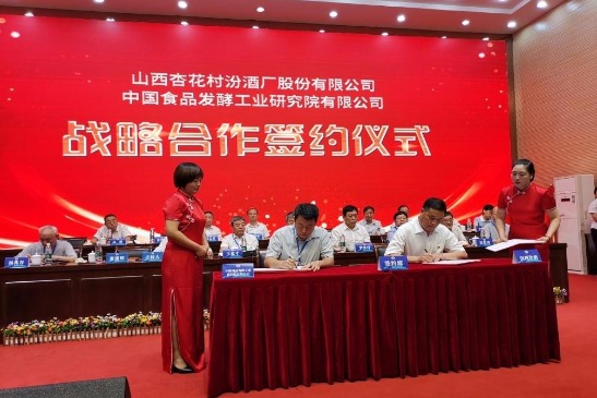 8月8日,食品院受邀與山西杏花村汾酒集團第一屆科技大會,食品院總經理董建輝、原副院長張五九、副院長宋全厚、釀酒技術研究發展部主任王德良,中國酒業協會理事長王延才,江南大學校長、中國工程院院士陳堅,山西汾酒集團董事長李秋喜等白酒行業權威人士和龍頭企業家出席會議。