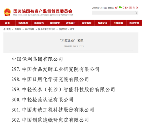 中國制漿造紙研究院新入圍國務院國資委“科改企業”名單,保利中輕科改企業增至6家。在國務院國資委年度專項考核中,中國食品發酵工業研究院、中輕檢驗被評為“標桿企業”,中國日用化學研究院、中輕長泰被評為“優秀企業”。
