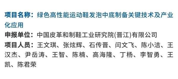 中國(guó)皮革制鞋院申報(bào)的科研項(xiàng)目“運(yùn)動(dòng)鞋減震回彈安全指數(shù)體系構(gòu)建”和“鞋類物理穿用性、化學(xué)安全性、微生物衛(wèi)生性三維重要國(guó)際標(biāo)準(zhǔn)的聯(lián)合研制及應(yīng)用”獲科技創(chuàng)新項(xiàng)目三等獎(jiǎng),中國(guó)皮革制鞋院晉江公司申報(bào)的科研項(xiàng)目“綠色高性能運(yùn)動(dòng)鞋發(fā)泡中底制備關(guān)鍵技術(shù)及產(chǎn)業(yè)化應(yīng)用”獲科技創(chuàng)新項(xiàng)目二等獎(jiǎng)。此次獲獎(jiǎng),進(jìn)一步彰顯中國(guó)皮革制鞋院在科技創(chuàng)新工作方面的顯著成效。