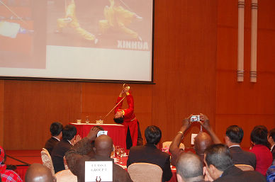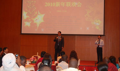 2009年12月30日,中國食品發酵工業研究院舉辦了“商務部發展中國家食品安全檢測技術培訓班”新年聯歡會,來自48個發展中國家的86名學員歡聚一堂共慶2010年新年。集團公司陳學忠董事長、商務部國際商務官員研修學院郭英杰處長、常鵬副處長、張玉琪副處長、杜兆君副處長應邀出席了聯歡會,中食院王潔副書記、程池副院長應邀到會。陳學忠董事長向全體學員祝賀新年并向學員及學員家屬表示慰問;郭英杰處長代表商務部向全體學員表達了新年祝福,并預祝培訓班圓滿成功。