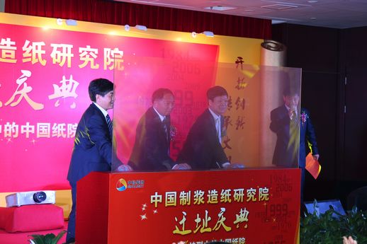 儀式上,中國輕工業(yè)聯(lián)合會會長步正發(fā)、中國輕工集團公司總經(jīng)理俞海星、中國制漿造紙研究院院長曹春昱共同按下了新址啟動裝置按鈕,標志著中輕大廈正式啟用。