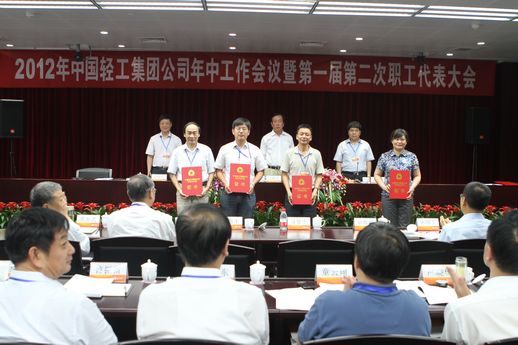儀式由集團公司董事長、黨委書記陳鄂生主持。頒獎儀式上宣布了“中國輕工集團公司2012年度科學技術獎獲獎項目名單”,并由監事會尋寰中主席、陳鄂生董事長和俞海星總經理為中國制漿造紙研究院、中國食品發酵工業研究院、中國皮革和制鞋工業研究院、長沙長泰機械股份有限公司、中國輕工業武漢設計工程有限責任公司以及中國輕工業長沙工程有限公司等6家獲獎單位頒發了中國輕工集團公司科學技術獎勵證書。