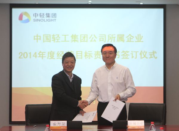 集團公司總經理俞海星與中輕物產公司總經理錢小林簽訂經營目標責任書