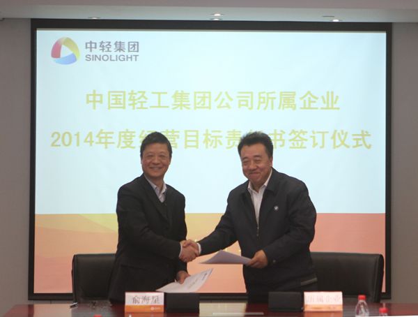 集團公司總經理俞海星與造紙院院長曹春昱簽訂目標責任書