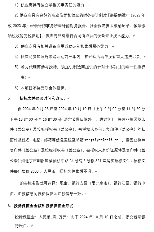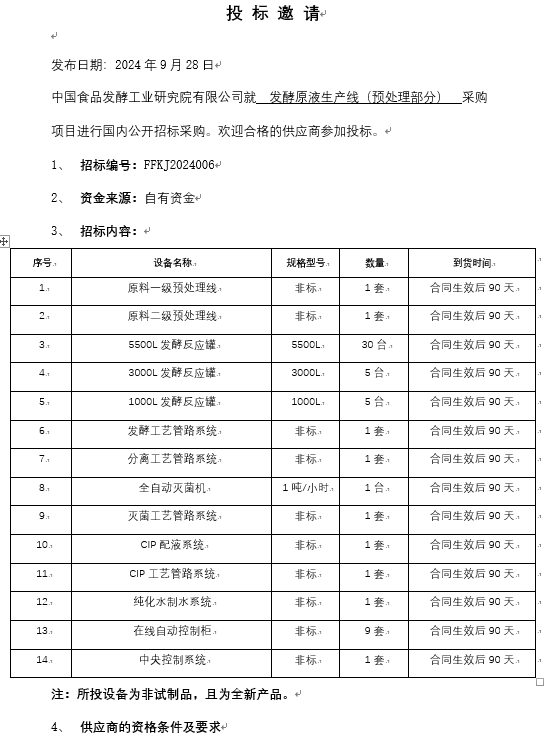 投標(biāo)邀請(qǐng)(FFKJ2024006)