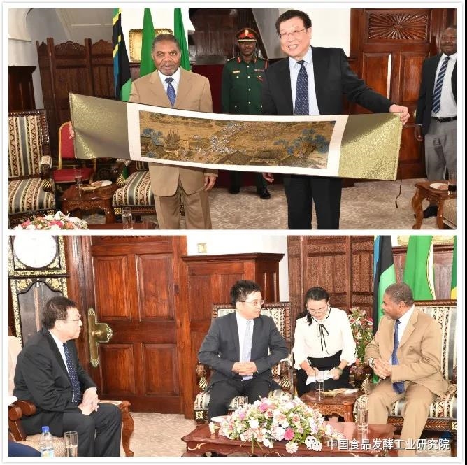 2019年9月10日,桑給巴爾總統(tǒng)謝因會見了中國駐桑給巴爾總領館總領事謝小武和食品院黨委書記董偉紅一行。謝因總統(tǒng)回顧了中桑傳統(tǒng)友誼,對中國政府長期以來對桑給巴爾政府和人民的無私援助表示衷心感謝,對食品院在培訓過程中的全力付出表示高度贊賞,對培訓所取得的成果表示感謝,并表示桑給巴爾政府將繼續(xù)支持食品院在當?shù)亻_展培訓活動。謝因總統(tǒng)與董偉紅書記互贈了禮物,加深了中桑雙方的深厚友誼。桑給巴爾ZBC電視臺、《每日新聞》等當?shù)匦侣劽襟w對此進行了專題報道。