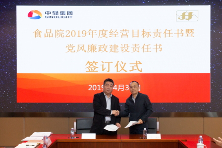 總經理蔡木易在簽訂儀式上代表食品院分別與各部門、直屬企業主要負責人簽訂了2019年度經營目標責任書;黨委書記董偉紅代表院黨委與直屬企業簽訂了2019年度黨風廉政建設責任書。