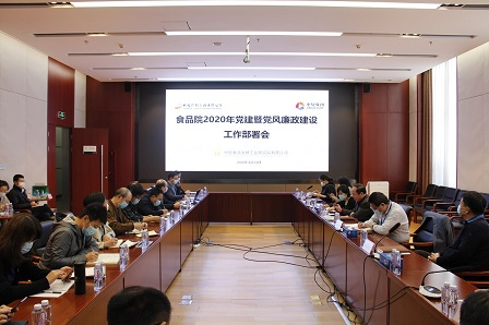 4月24日上午,食品院召開了2020年黨建暨黨風廉政建設工作部署會。食品院黨政領導班子成員、各支部書記、支委,紀委委員,工會主席、副主席,團委書記、副書記,中食公司黨總支委員參加會議。會議由食品院黨委委員、副總經理宋全厚主持。